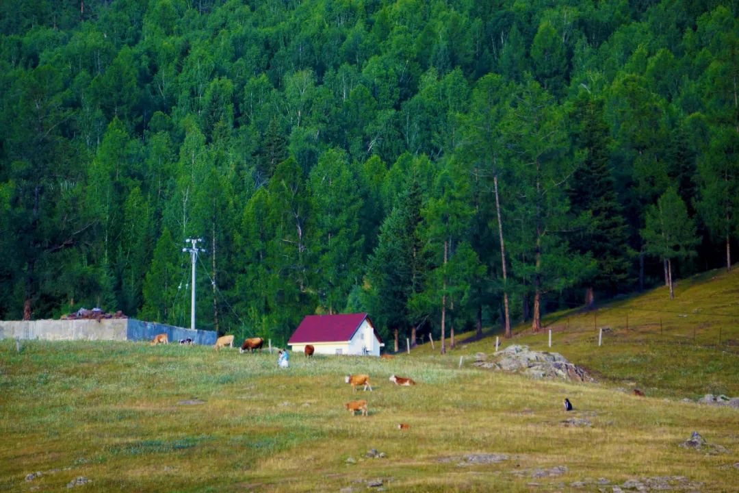 剧中的“夏牧场”那仁牧场是阿勒泰地区著名的夏牧场之一。这里气候适宜,水草丰美,植被茂密,种类丰富,非常适合徒步。