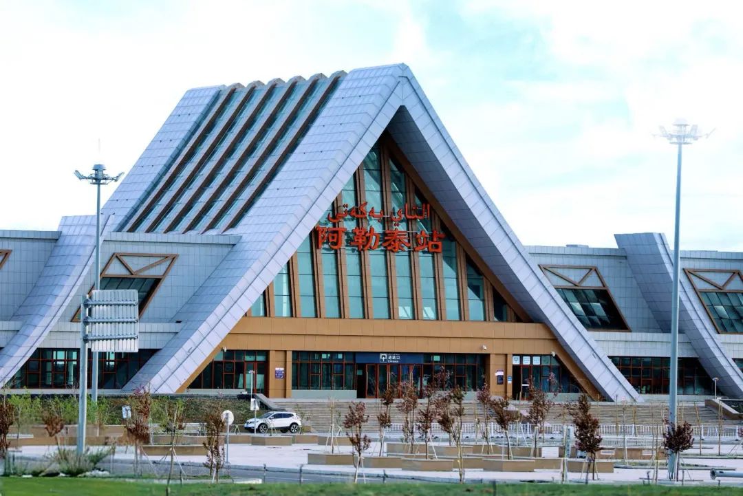 阿勒泰站于2017年6月10日投入使用,目前日均开行普速列车2对,与区内富蕴县、北屯市、福海县、克拉玛依市、奎屯市、石河子市、乌鲁木齐市等地直通。