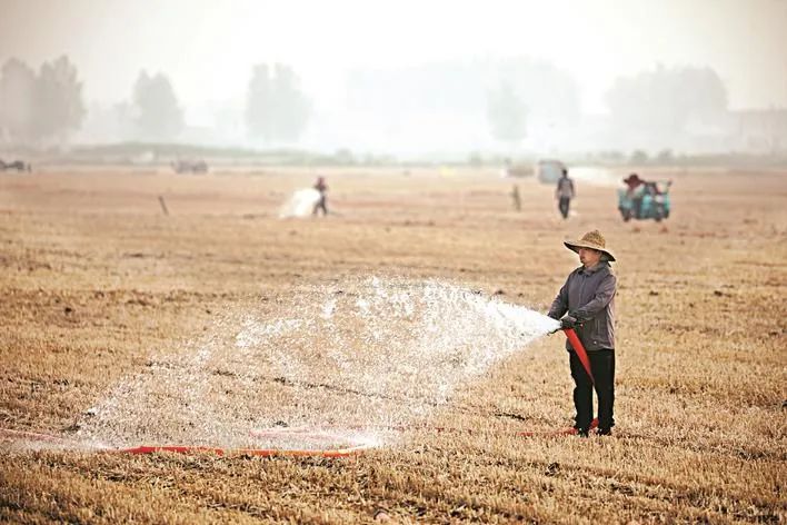 6月12日,濉溪县双堆集镇的田野里机械轰鸣,农民群众抢抓农时、浇灌造墒,全力推进秋粮播种工作。(摄影 范胜明)
