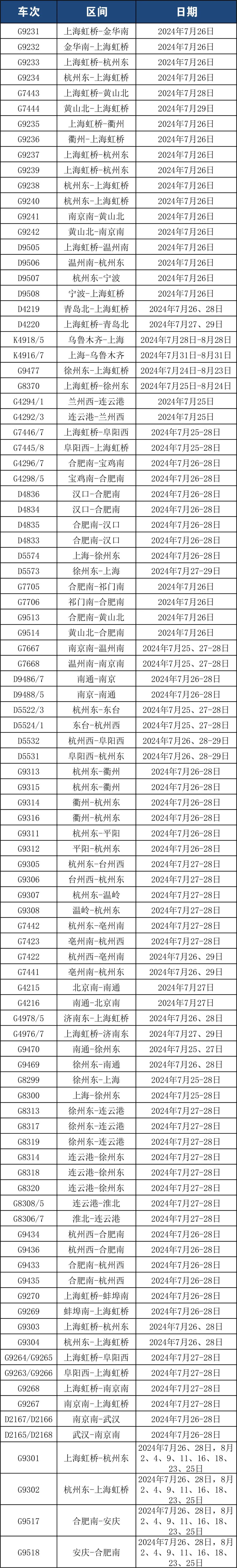 长三角铁路密切关注台风路径变化,动态调整列车开行方案,满足旅客出行需求,恢复开行、增开多趟旅客列车,快来看看有没有你需要的车次。