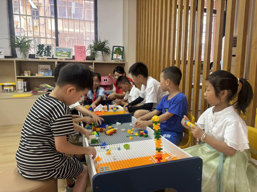在党群服务中心,设置了儿童友好空间,提供乐高积木、书籍等。正值暑假期间,社区还开展了一系列儿童公益课程,解决家长暑期带娃难题。