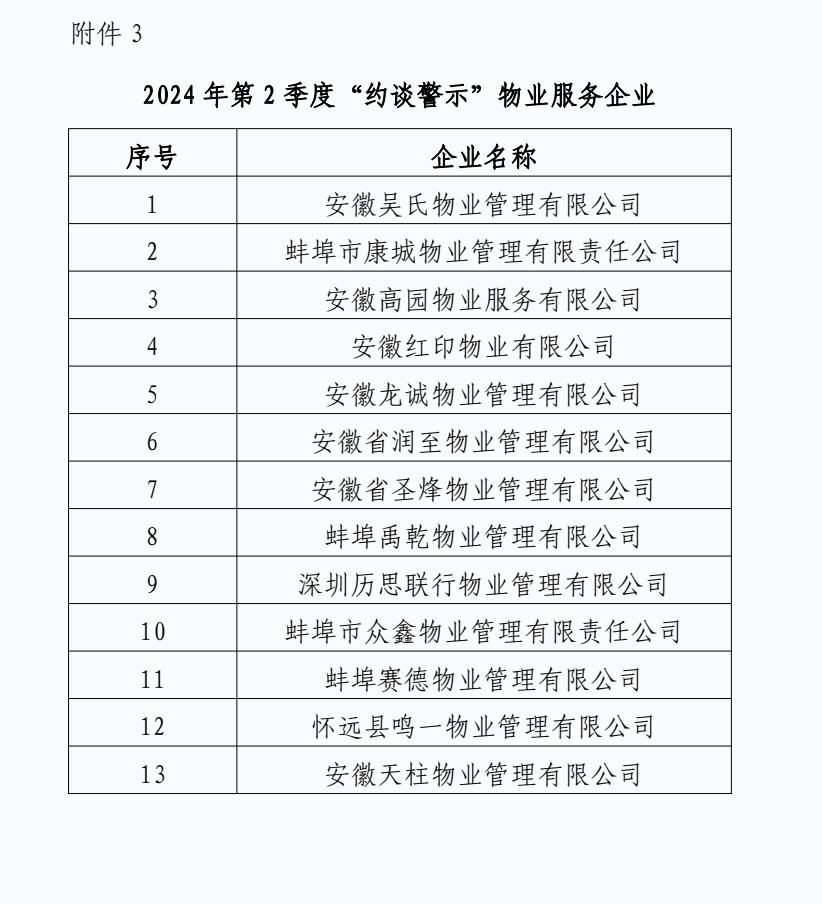 3. 2024年第2季度 “约谈警示”物业服务企业;