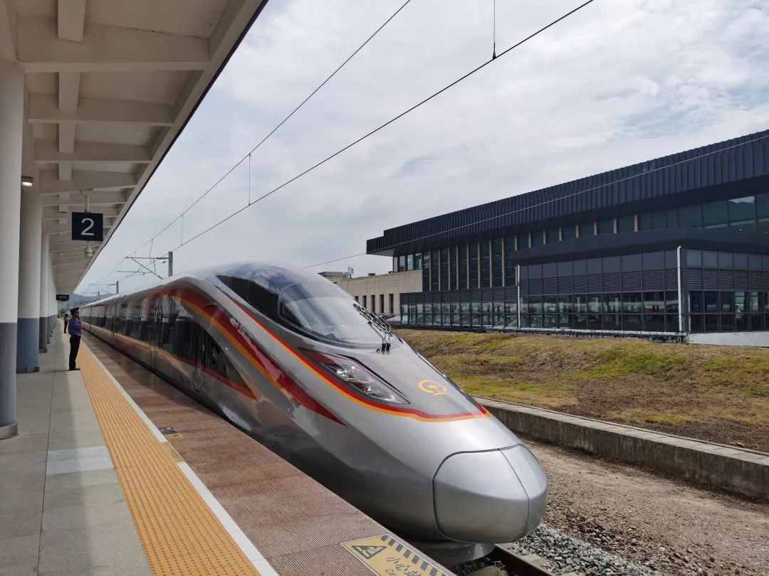 据广铁集团消息,9月14日11时30分,G8491次(梅州西至广州东)、G8494次(广州东至梅州西)、G8496次(深圳北至梅州西)三趟复兴号动车组,分别从梅州、广州和深圳三地同时发车,这标志着龙川至龙岩高铁梅龙段(以下简称“梅龙高铁”)正式开通运营。随着梅龙高铁开通运营,我国铁路营业里程突破16万公里。