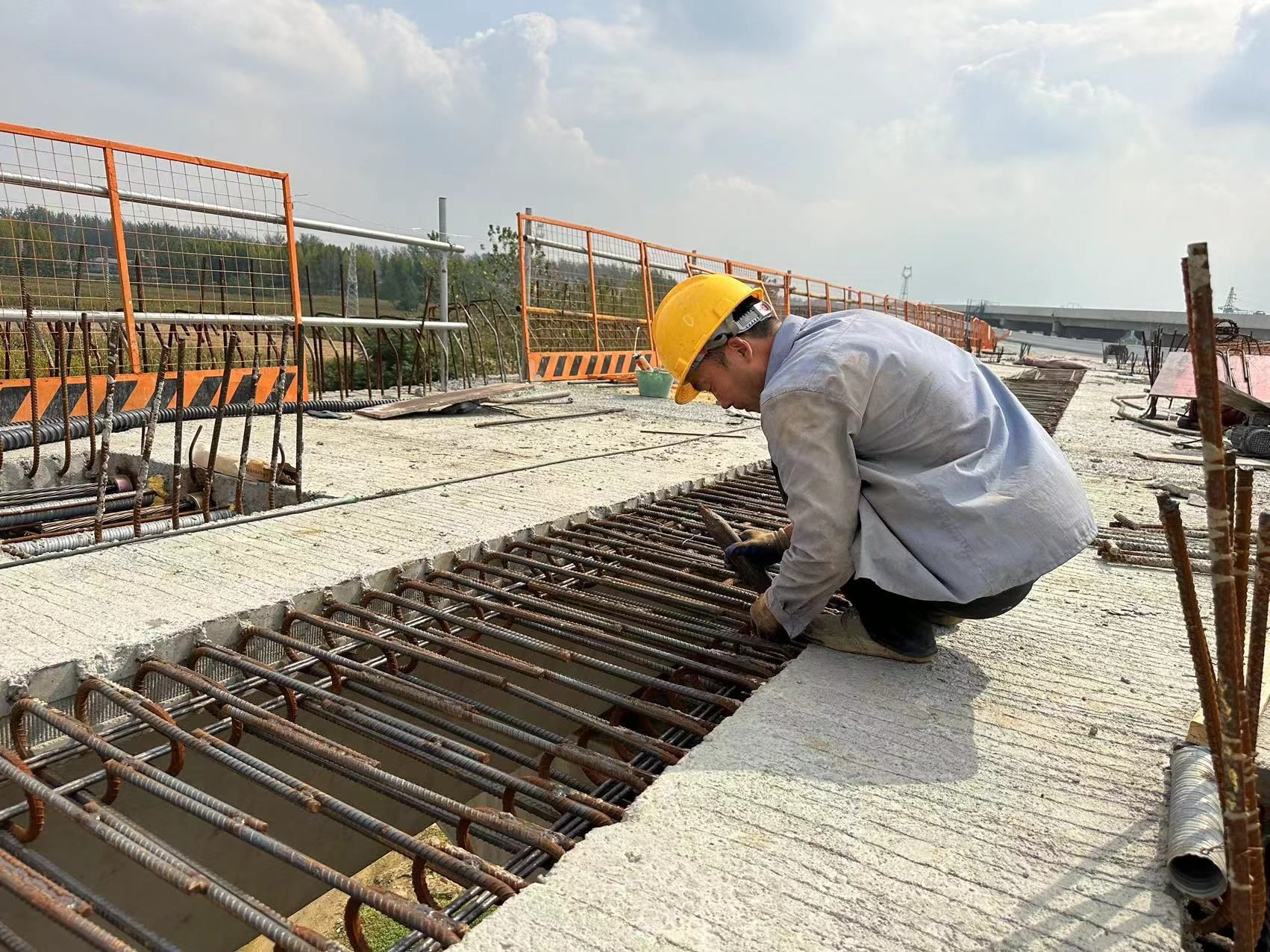 抽出两根细钢丝,从钢筋下方绕过、勾回,再拧上几圈,将两根钢筋紧紧捆住。王照润就这样一遍又一遍地操作着,这是他在五蒙高速项目上度过的第二个国庆节了。