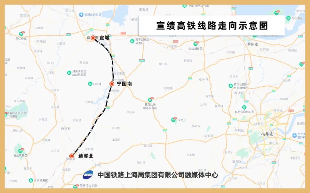 宣绩高铁位于安徽省宣城市境内,正线全长115公里,设计时速350公里,全线设宣城、宁国南、绩溪北3座车站,其中宁国南站为新建车站。