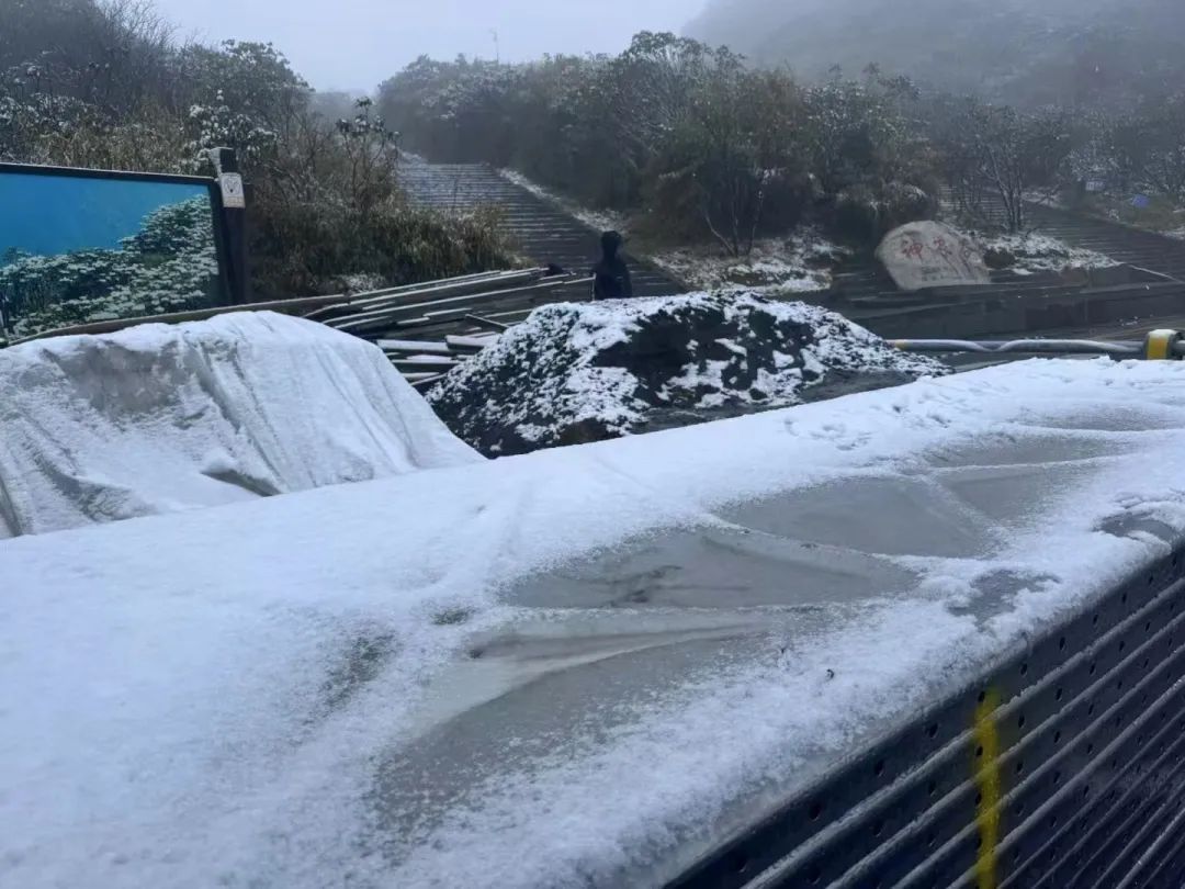 受持续冷空气及神农架高海拔气温影响,刚刚,湖北神农架林区迎来降雪。