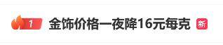 19日,话题“金饰价格一夜降16元每克”冲上热搜第一,引发热议。