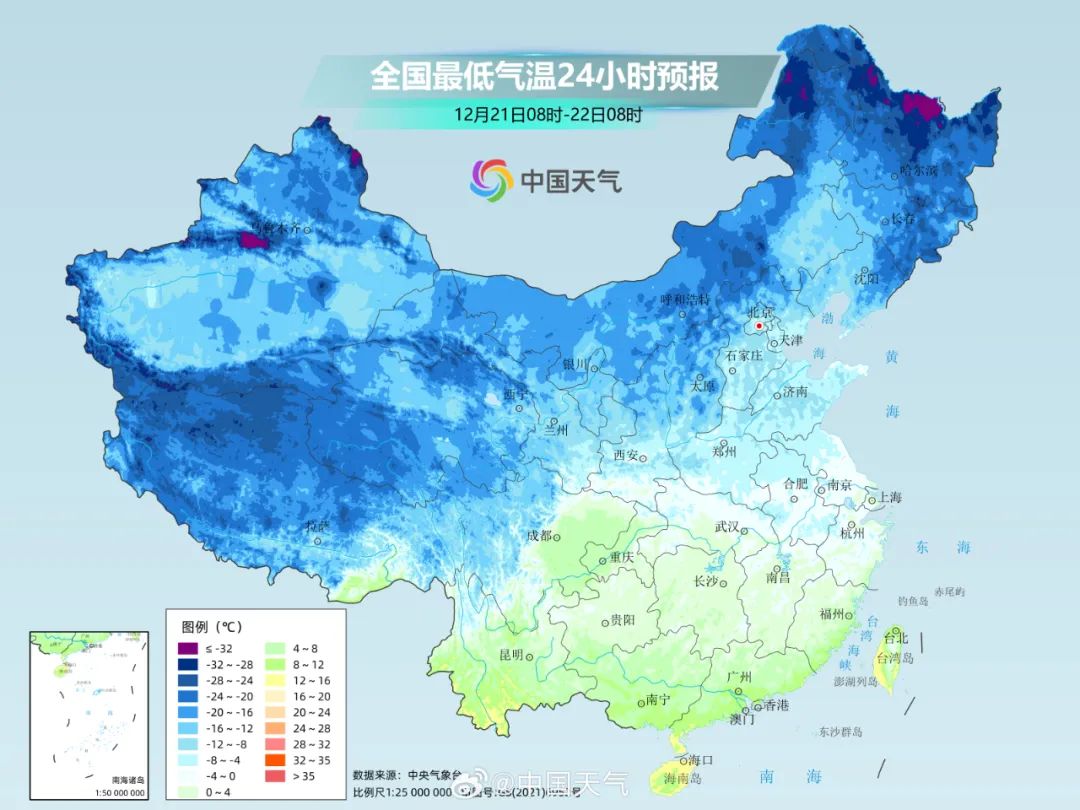 12月21日,迎来冬至节气,中东部大部地区将以偏冷状态开启数九。今后三天,江汉、江南、华南北部和东部等地平均气温将较常年同期偏低2至5℃,最高气温10℃线将南撤至江南中南部。