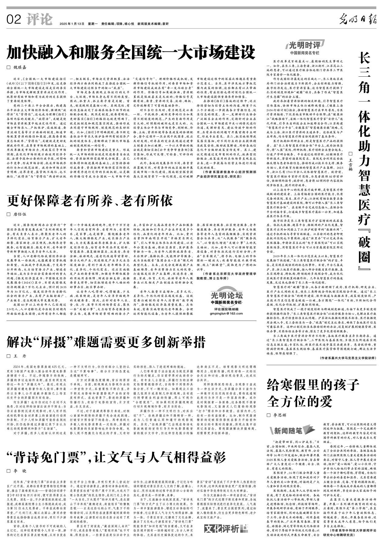 长三角城乡医疗资源分布并不均衡,各地医疗服务差异长期存在。通过“长三角智慧医疗联合体”,三甲医院与基层医院、乡镇卫生所逐层实现信息互联互通;专家队伍、新医疗技术逐步落实共建共享。患者就诊难、重特病诊断难、基层医生规培难、基层医疗监管难等困境被打破,群众生活幸福感、保障感增强了。