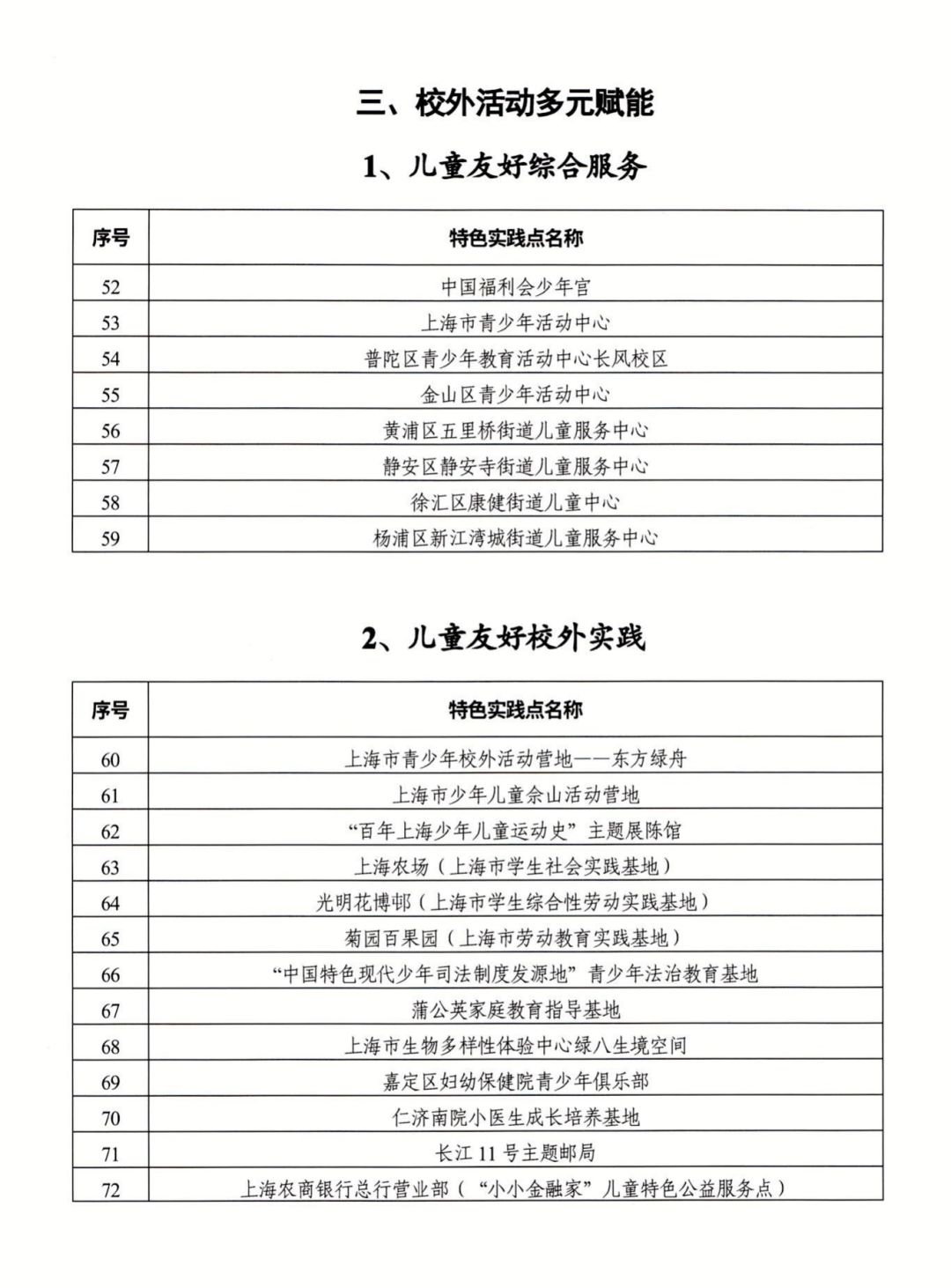 首批100个儿童友好特色实践点,呈现了上海市各区、各领域、各单位践行儿童友好的特色亮点,为全市域高质量建设儿童友好城市提供了样本经验。