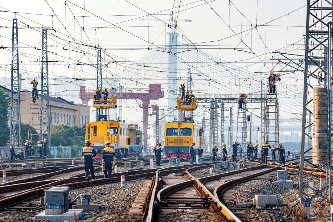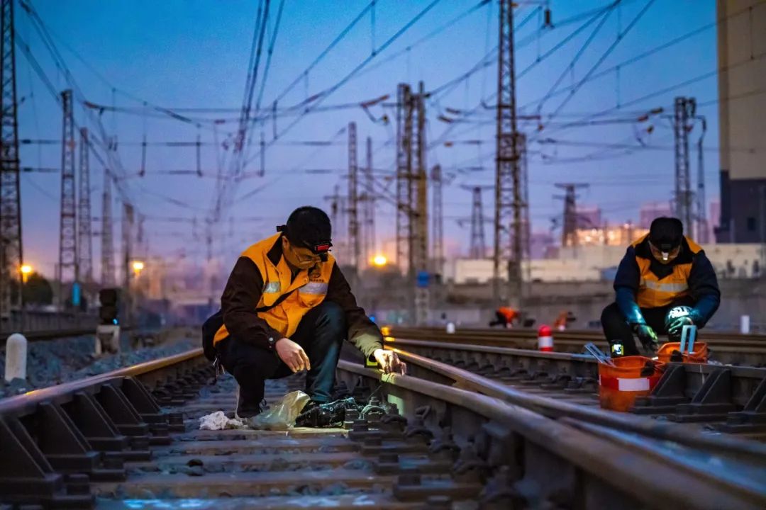 荆门南站场内,宜昌综合维修段探伤工正在进行探伤作业。闻子豪 摄
