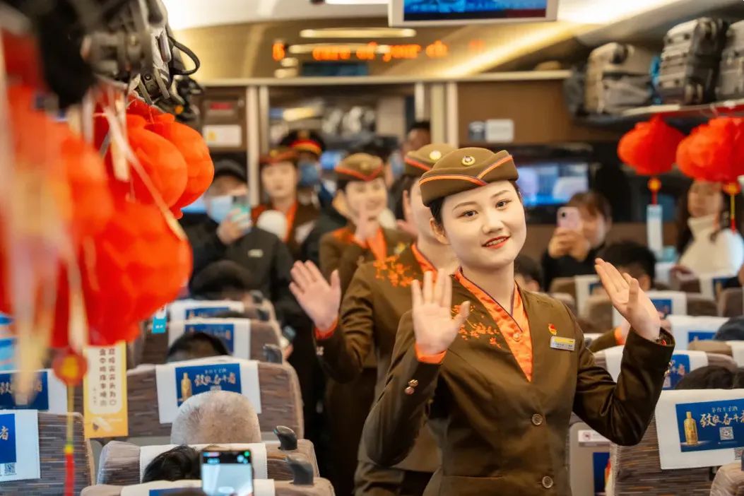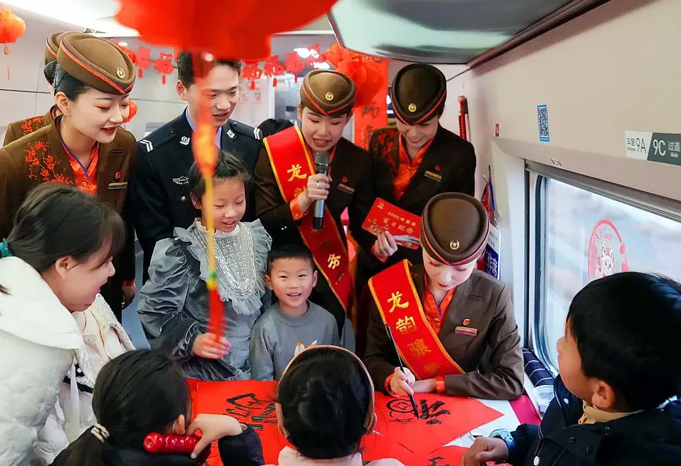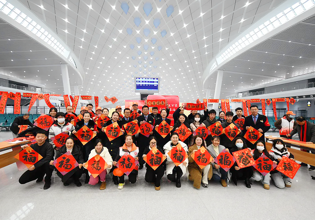 欢声笑语中,旅客感受到年味与温暖。彭琦 摄