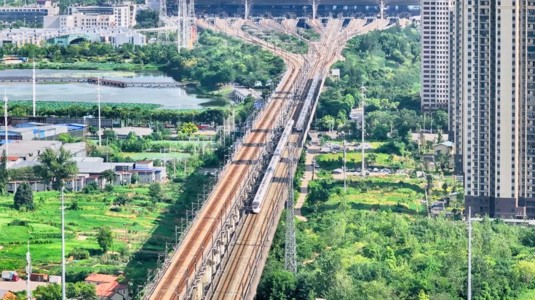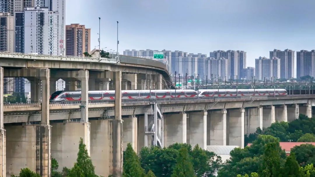 复兴号智能动车组驶出天兴州长江大桥。邹政 摄