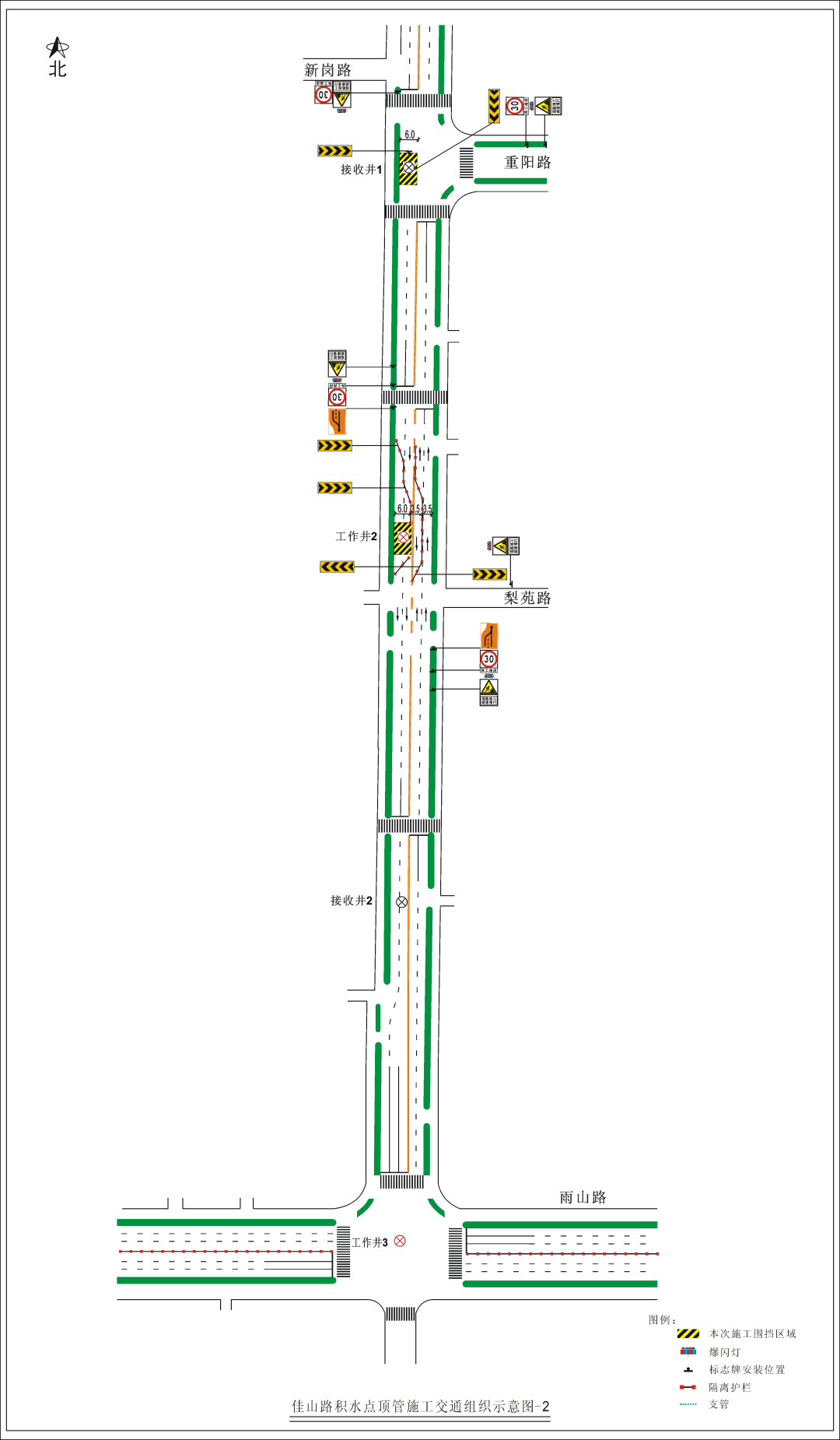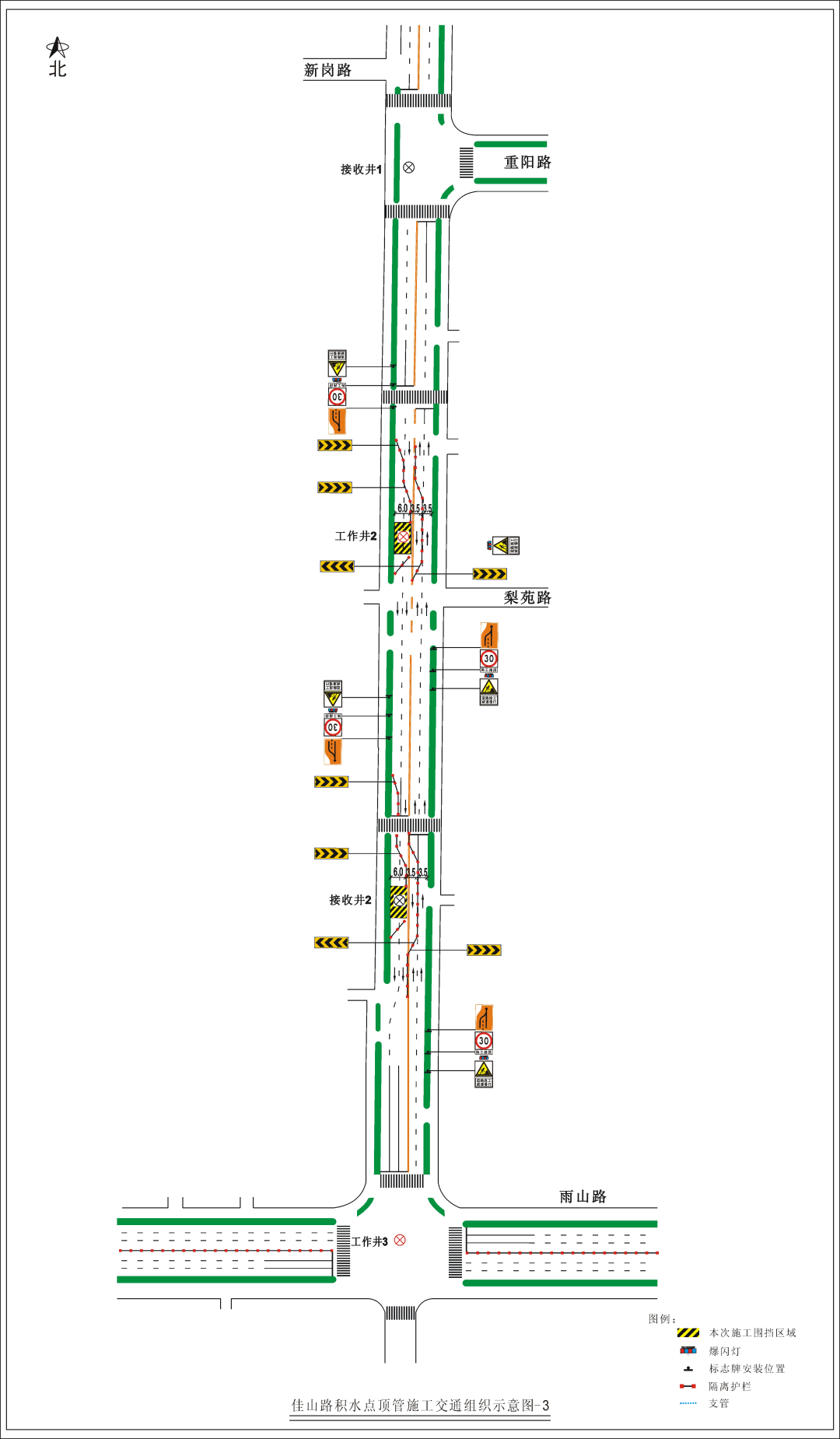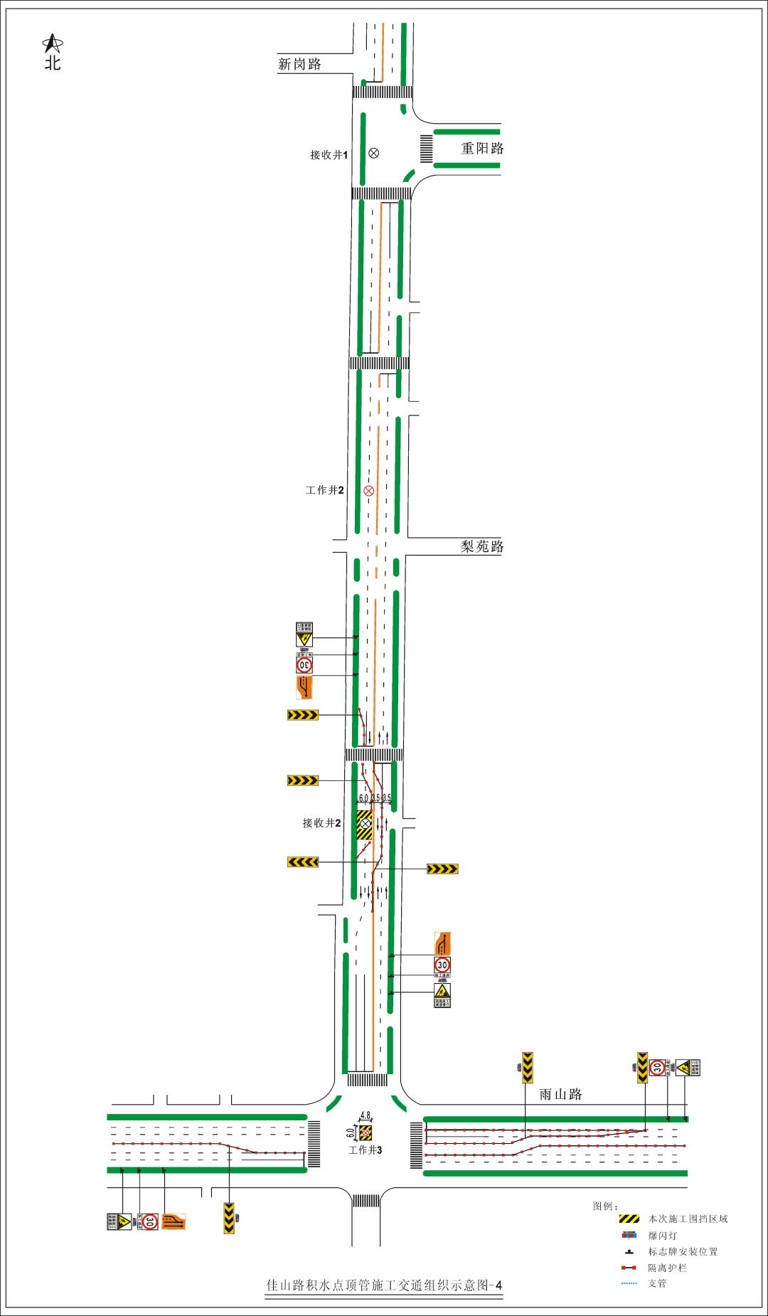 施工期间,行经该路段的行人及车辆须注意安全,根据指示标牌绕行。如遇交通组织调整和变动,以现场设置的交通标志标牌为准。