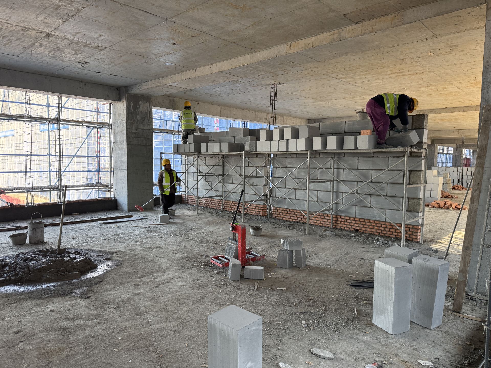 新年伊始,固镇县特教学校改扩建项目现场一派繁忙,工人们坚守岗位,快马加鞭推进施工进度。据了解,该项目主体结构已全面封顶,进入墙体砌筑工作,预计今年5月竣工交付。