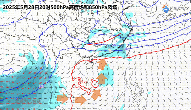 预计,5月28日08时至29日08时,江南中南部、西南地区南部、华南大部、台湾岛大部等地部分地区有大到暴雨,其中,江西中部、福建西部和东南部、广西东部、广东西部和南部沿海地区、台湾岛中北部等地部分地区有大暴雨(100至200毫米)。上述部分地区伴有短时强降水(最大小时降雨量30至50毫米,局地可超过60毫米),局地有雷暴大风等强对流天气。
