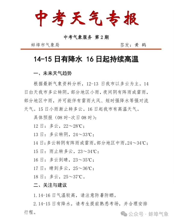安徽省气象台2025年06月13日16时00分发布高温黄色预警。预计未来3天阜阳、亳州、淮北、宿州、蚌埠、淮南等地最高温度将超过35℃,局部地区可达37℃。请注意防范!