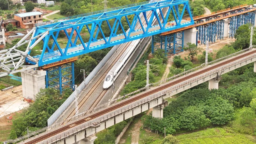 6月15日凌晨1时30分,在位于合肥市肥东县的新建上海至南京至合肥高速铁路(以下简称沪宁合高铁)施工现场,一榀重量近千吨的钢桁梁在导梁的牵引下,成功上跨沪蓉铁路滑移就位,这标志着项目建设取得重要进展,为后续架梁施工奠定了坚实的基础。