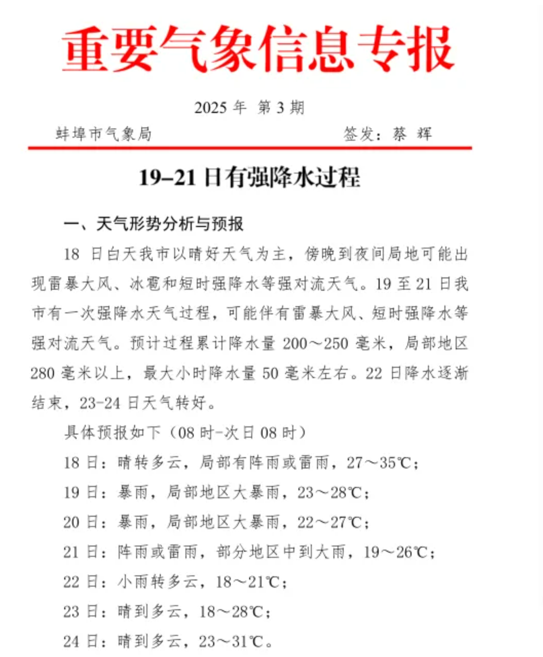 6月18日开始,随着新一轮降雨逐渐铺展,高温天气将迅速减退,预计18日夜里到22日,我市会经历一次连阴雨过程,并可能伴有雷暴大风、短时强降水等强对流天气。19-20日,我市会出现暴雨,21日-22日,我市有大雨,大家要警惕强对流天气,出行注意交通安全。