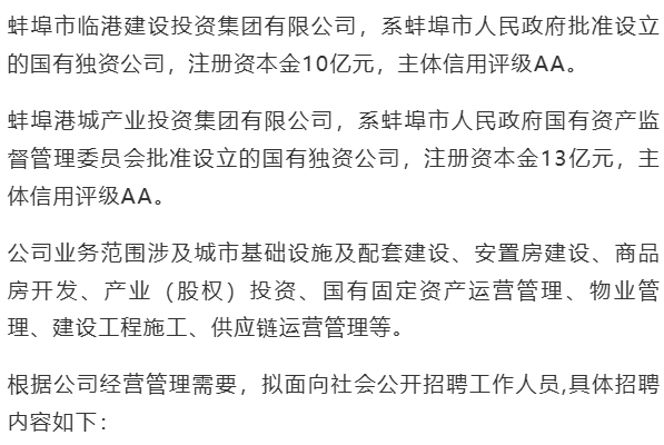 2025年蚌埠市临港建投集团(港城产投集团)及所属公司社会招聘22人公告