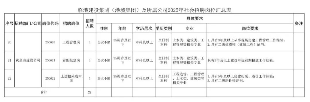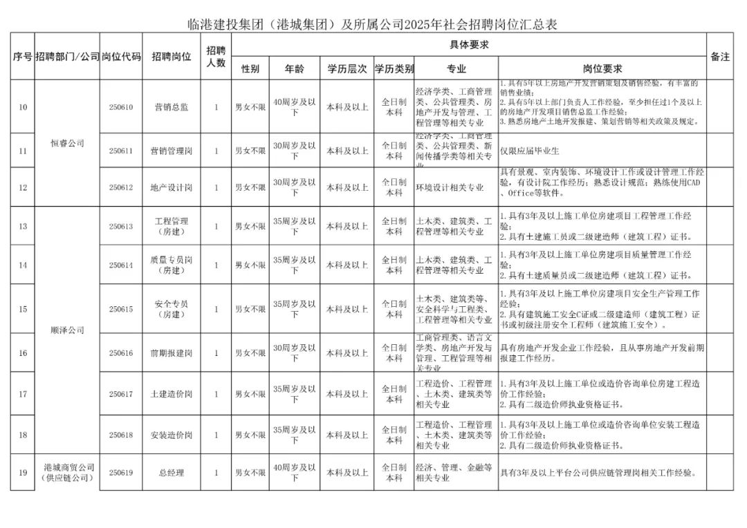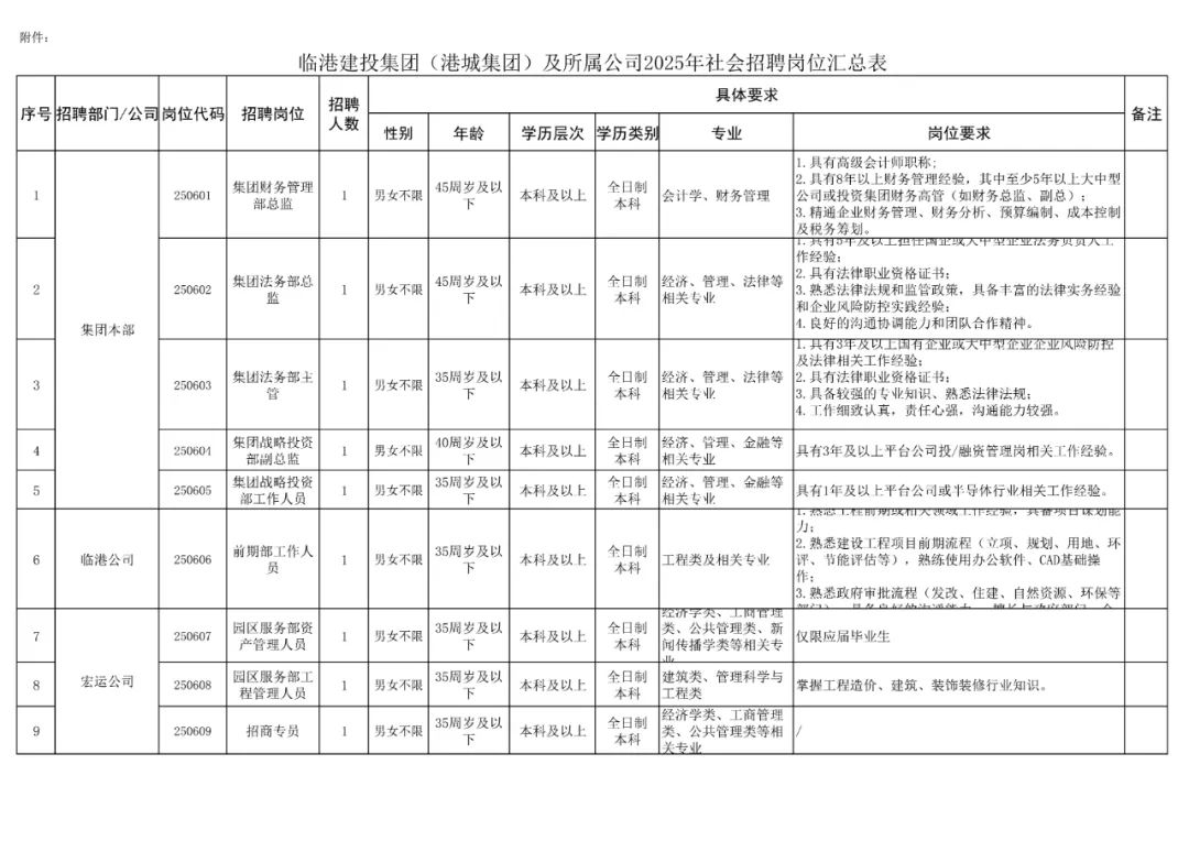 附件1:附件:临港建投集团(港城集团)及所属公司2025年社会招聘岗位汇总表0624