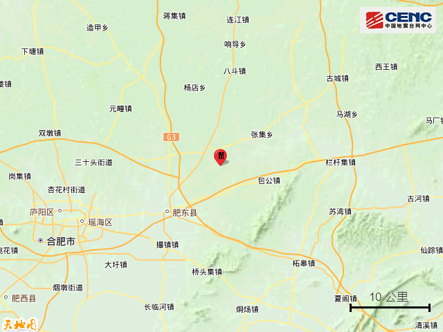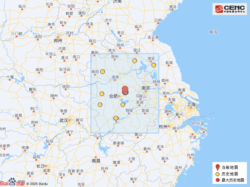 历史地震:根据中国地震台网速报目录,震中周边200公里内近5年来发生3级以上地震共15次,最大地震是2024年9月18日在安徽合肥市肥东县发生的4.7级地震(距离本次震中2公里),历史地震分布如图。