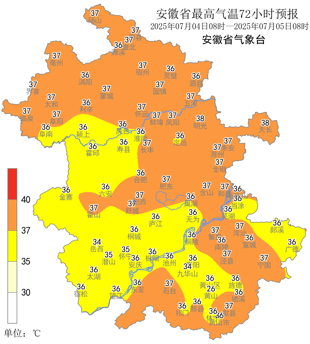 除了防范气温超过35℃的高温,还要提防空气相对湿度居高不下等其他因素带来的“隐性高温”。中央气象台数据显示,2日上午8点20分,合肥市气温为30.8℃,这个气温并没有达到高温线。但是,伴随着77%的空气相对湿度,体感温度已经达到了35.8℃。