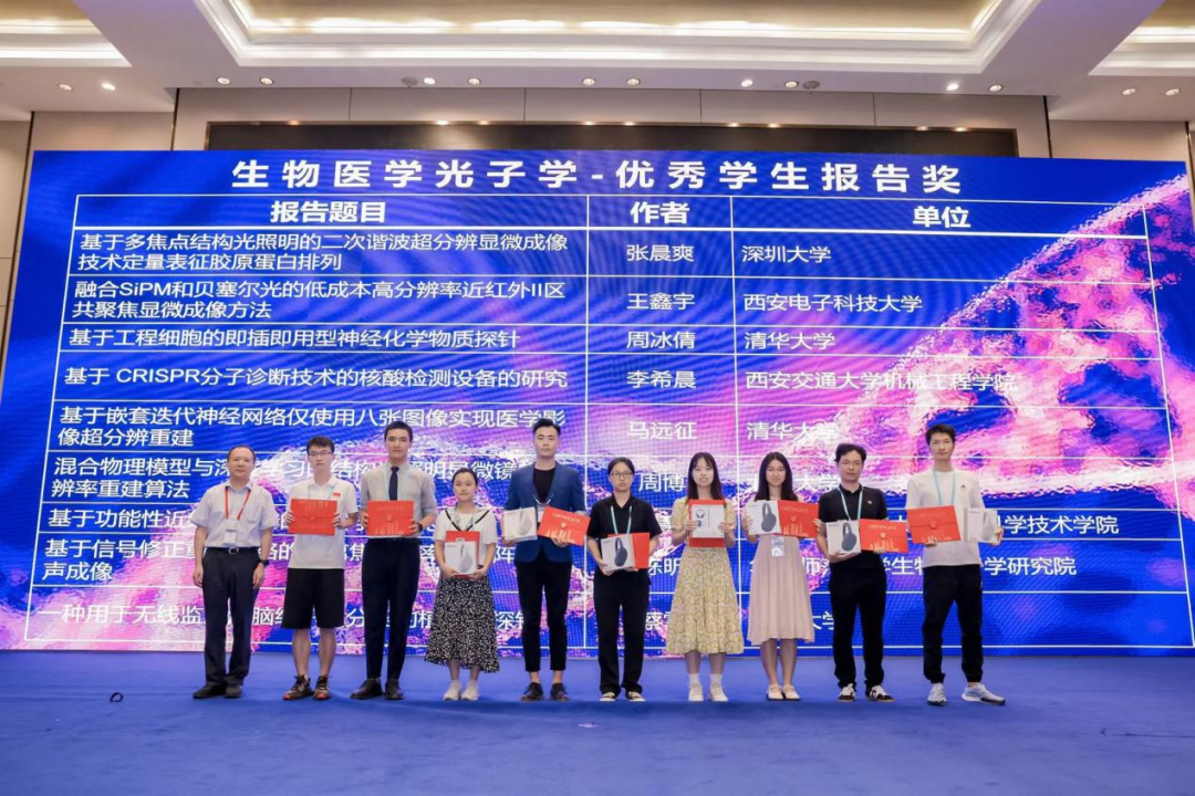 2023年6月,周冰倩(右四)参加生物医学光子学会议,获得优秀学生报告奖