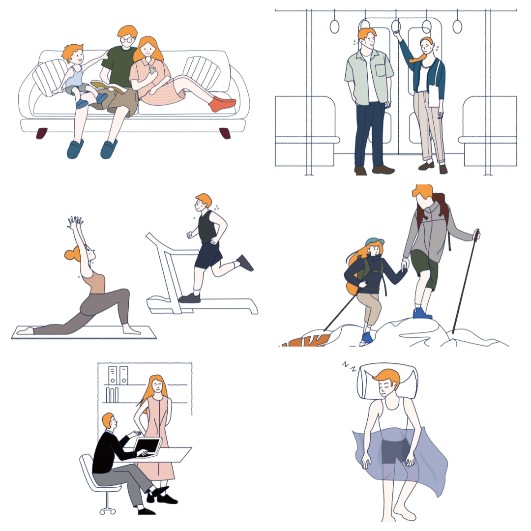 (贴身打底衣的多元使用场景:居家、地铁、健身、户外运动、职场等)