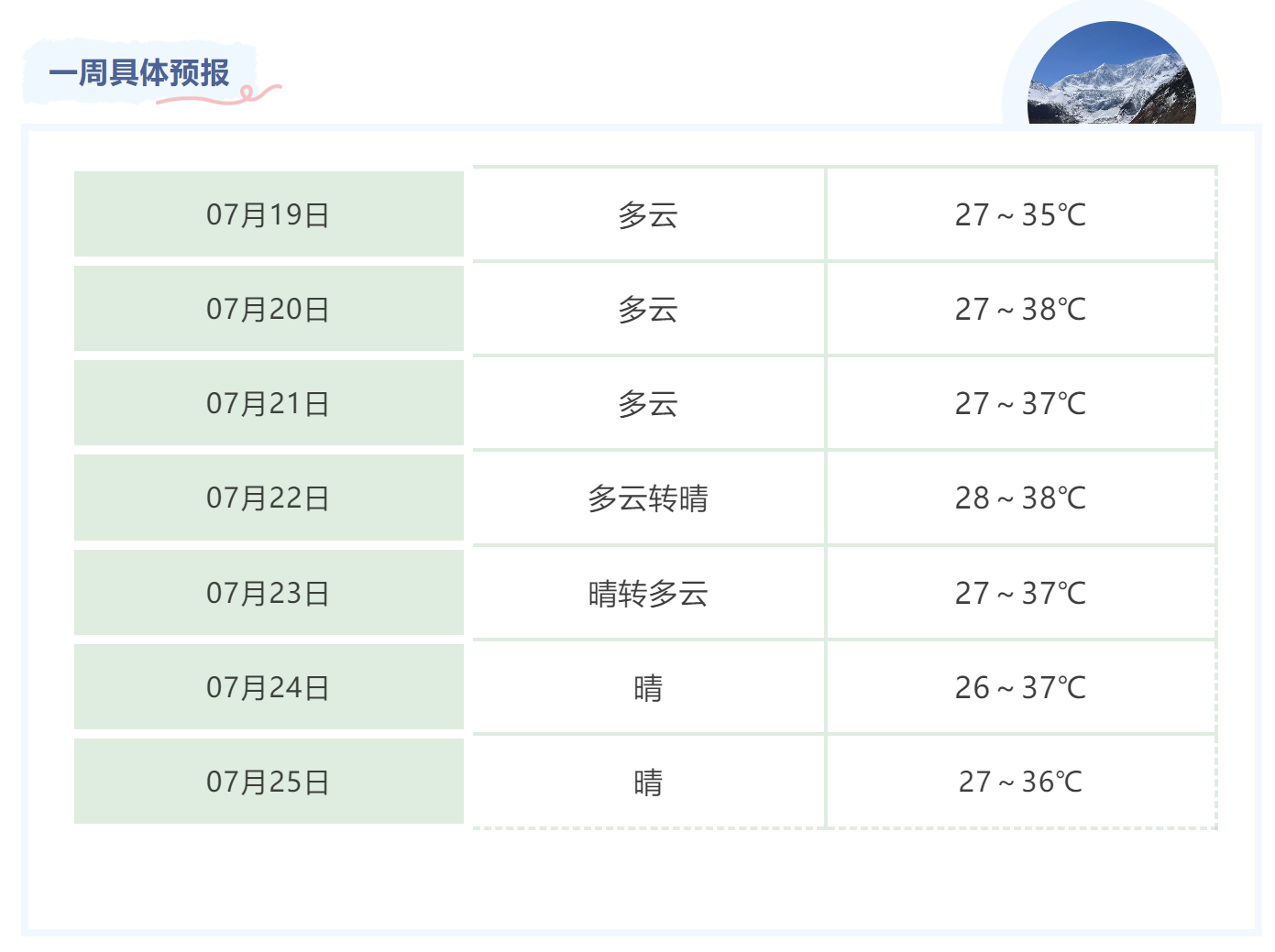 7月20日入伏首日,我市晴到多云,最高气温36~38℃,局部逼近40℃,午后紫外线极强,体感酷热难耐。而且,未来一周,我市都会保持这种高温不下线的天气。