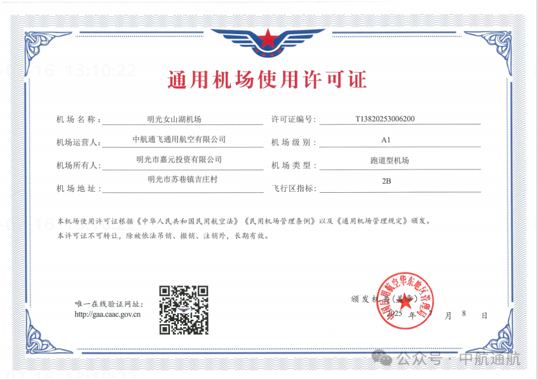 据了解,该机场不仅是滁州市首个建设的通用机场,更是华东首批建成通用机场中跑道最长、设施最完善的A1级通用机场,对于改善区域交通条件、构建水陆空综合立体交通网络,加快融入长三角有着重要意义,也为明光未来发展低空经济等新兴产业带来更多的机遇。