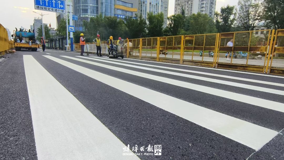 蚌埠发布客户端讯(融媒体记者 郝玉琳)胜利路提升改造工程取得阶段性进展。8月30日下午,记者在现场看到,胜利路(朝阳路至延安路段)机动车道沥青摊铺作业已全部完成,正在进行最后的交通标线施划工作。该路段机动车道将于9月1日前正式开放通行。