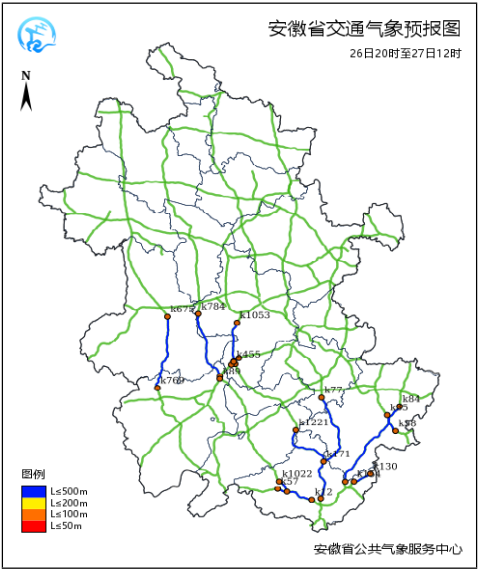 受大雾L≤500m影响的干线