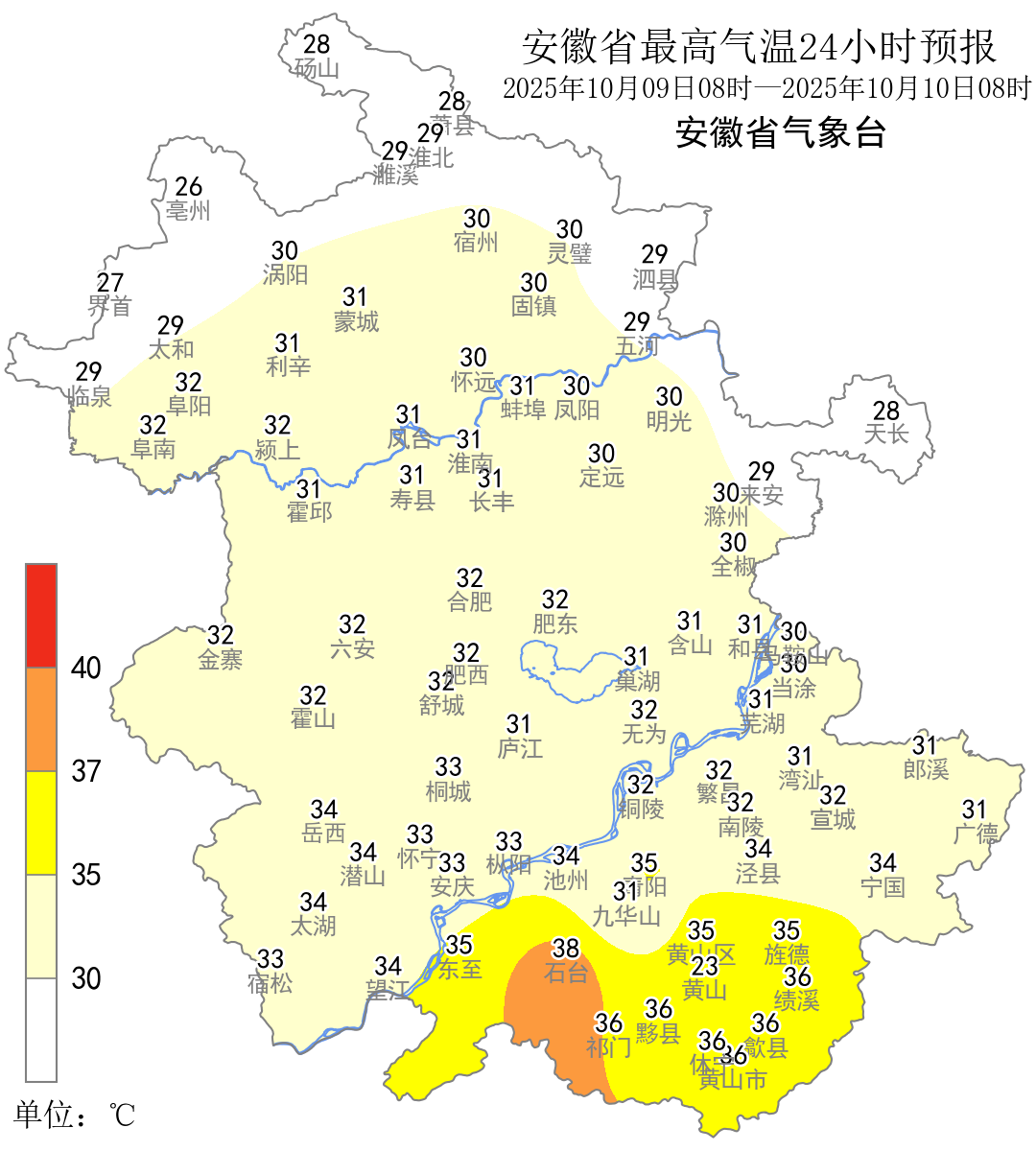 安徽省气象台预计,13日至14日和17日至18日分别有一次冷空气影响我省。但9日至13日江南部分地区有35℃以上的高温天气。以合肥的气温来看,预计9日至12日最高气温29~32℃,13日起气温显著下降。