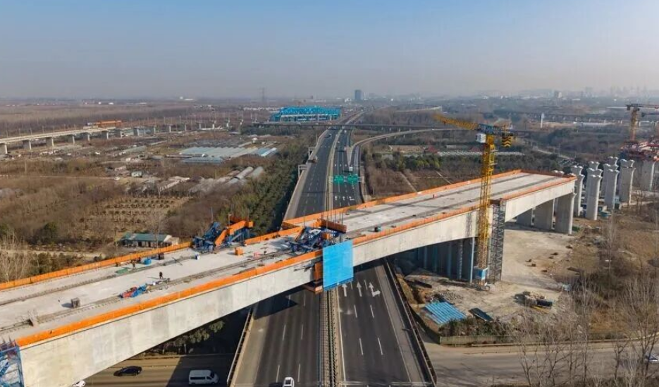 在沪陕高速经过江北新区永宁街道(泰山街道)花旗村段上方,一条混凝土“长龙”正在成型,这便是南京北站—站前六标段的施工现场。随着南京特大桥上跨沪陕高速六线连续梁左右幅全桥顺利合龙,这座长三角新枢纽正以肉眼可见的速度,持续刷新建设“进度条”。