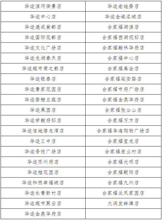“惠民菜篮子”商店名单