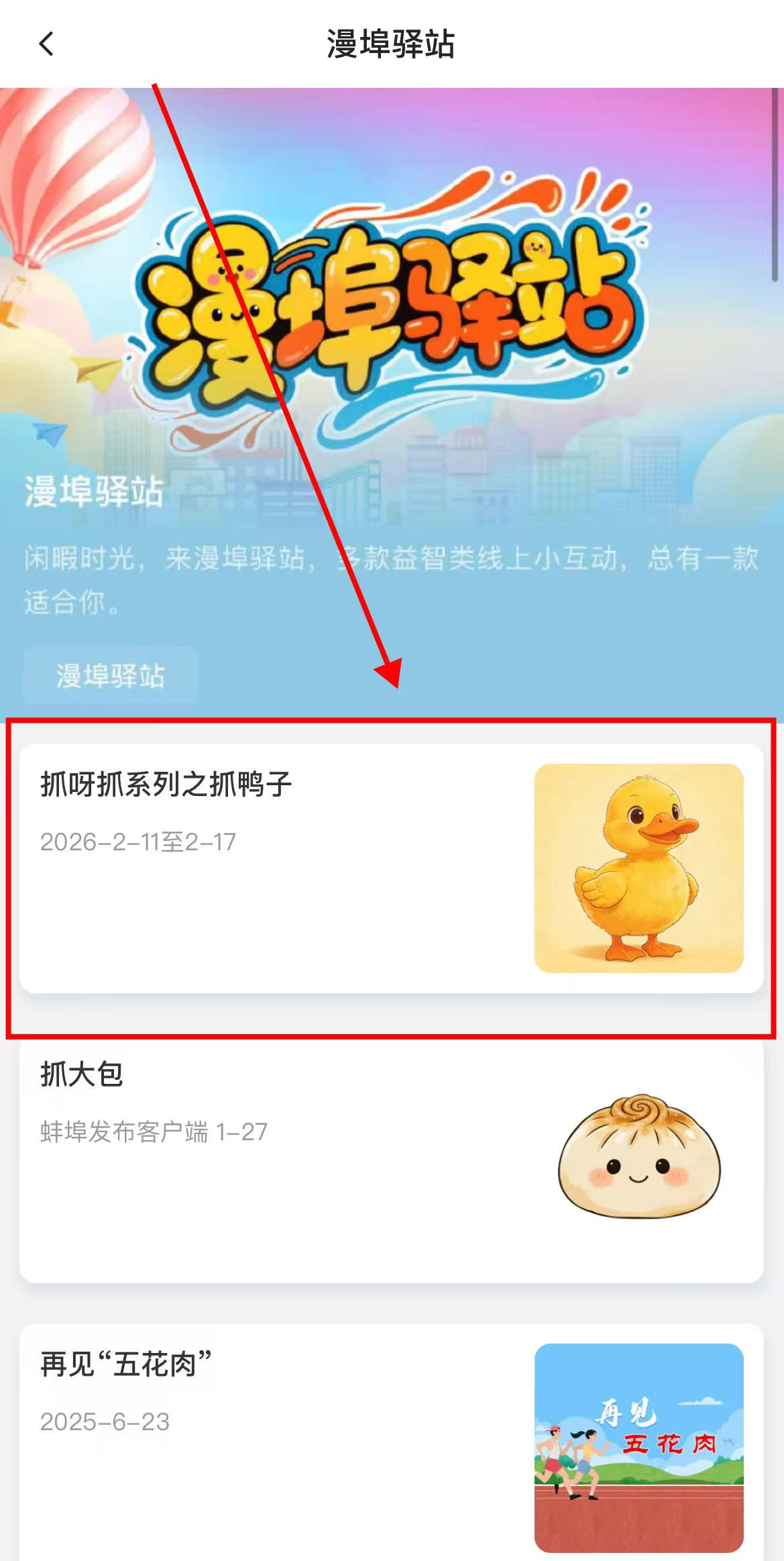 1、规则:下载蚌埠发布APP,并注册用户,打开首页“漫埠驿站”版块,进入“抓呀抓系列之抓鸭子”游戏页面,用户每天最多可玩10次;