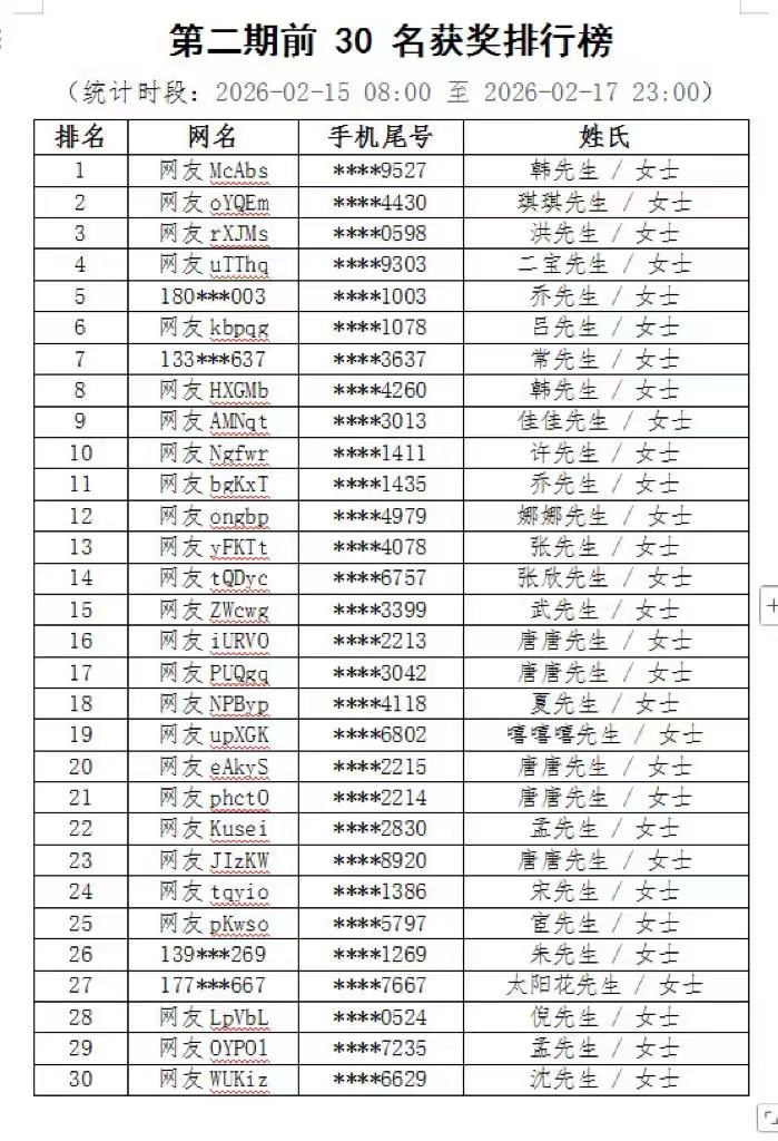 4. 注意事项:现场配合工作人员核对 “网名 + 手机尾号” 信息,无误后方可领奖。