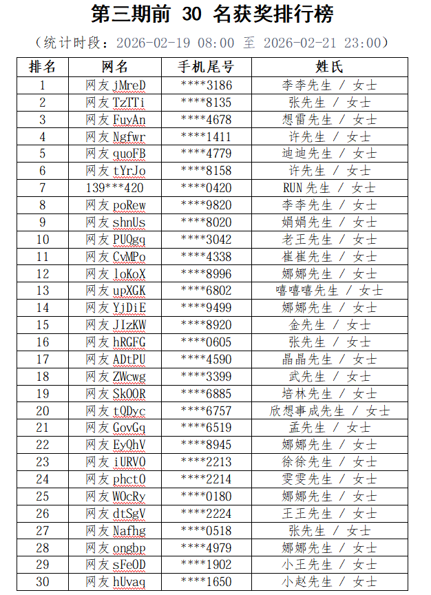 4. 注意事项:现场配合工作人员核对 “网名 + 手机尾号” 信息,无误后方可领奖。