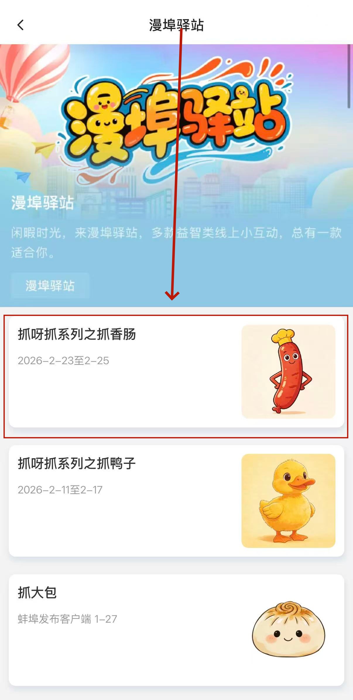 1、规则:下载蚌埠发布APP,并注册用户,打开首页“漫埠驿站”版块,进入“抓呀抓”系列之抓香肠游戏页面,用户每天最多可玩10次;