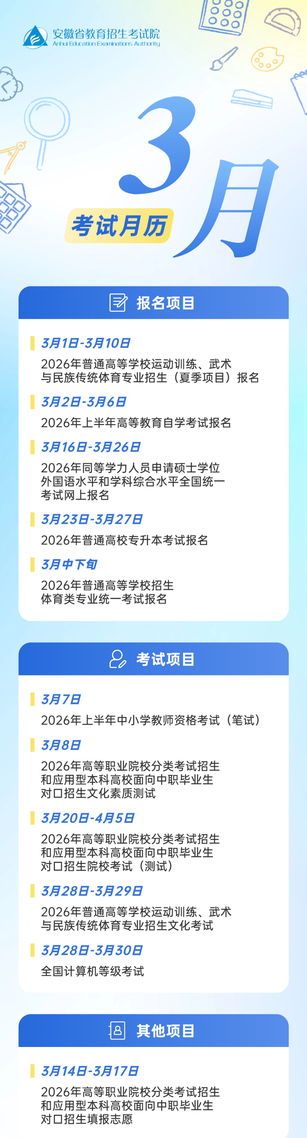 @安徽考生,2026年3月这些考试请留意