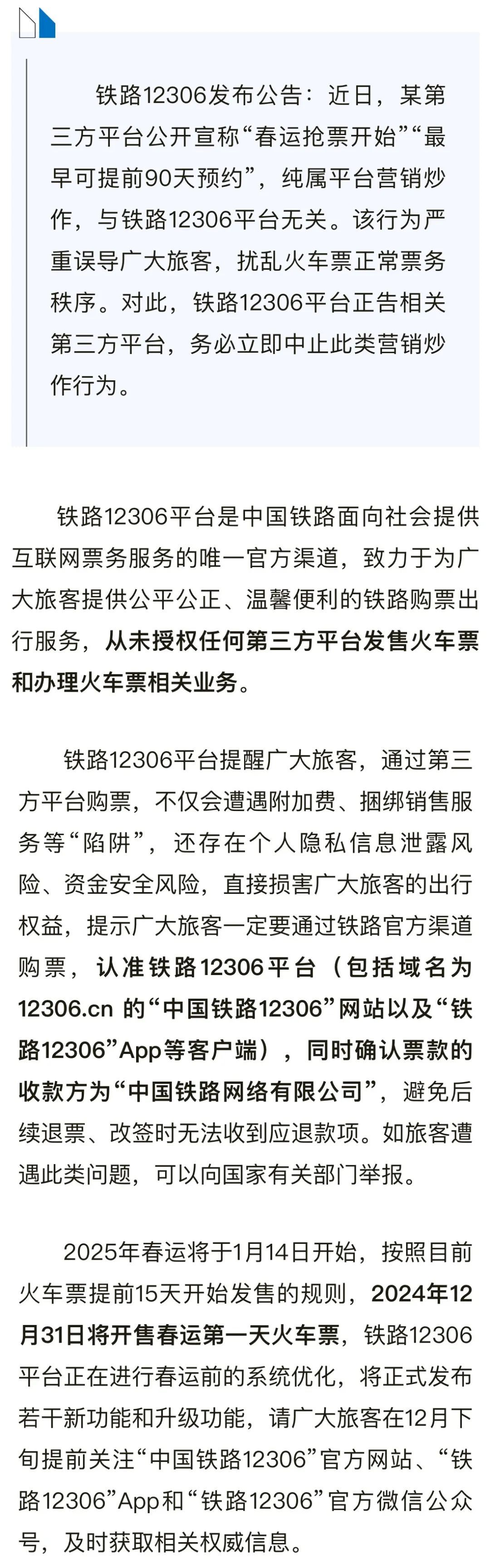 第三方平台称“春运抢票开始”,铁路12306回应:纯属营销炒作