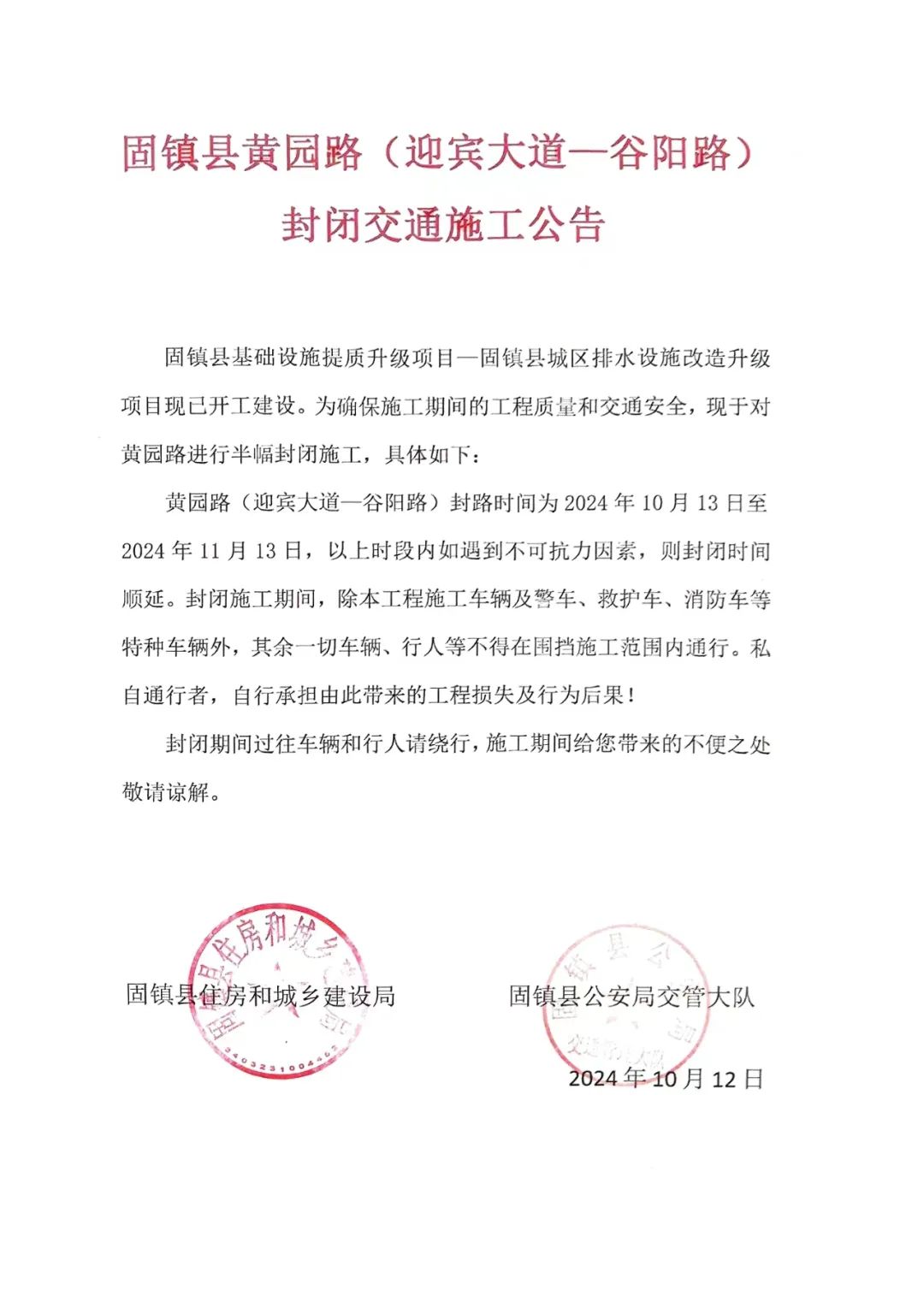 封闭交通施工公告