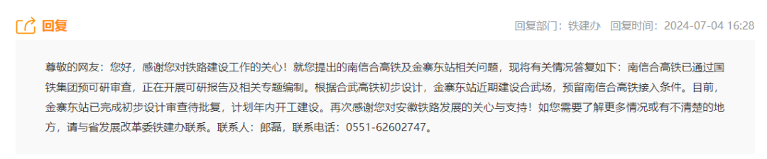 目前,金寨东站已完成初步设计审查待批复,计划年内开工建设。