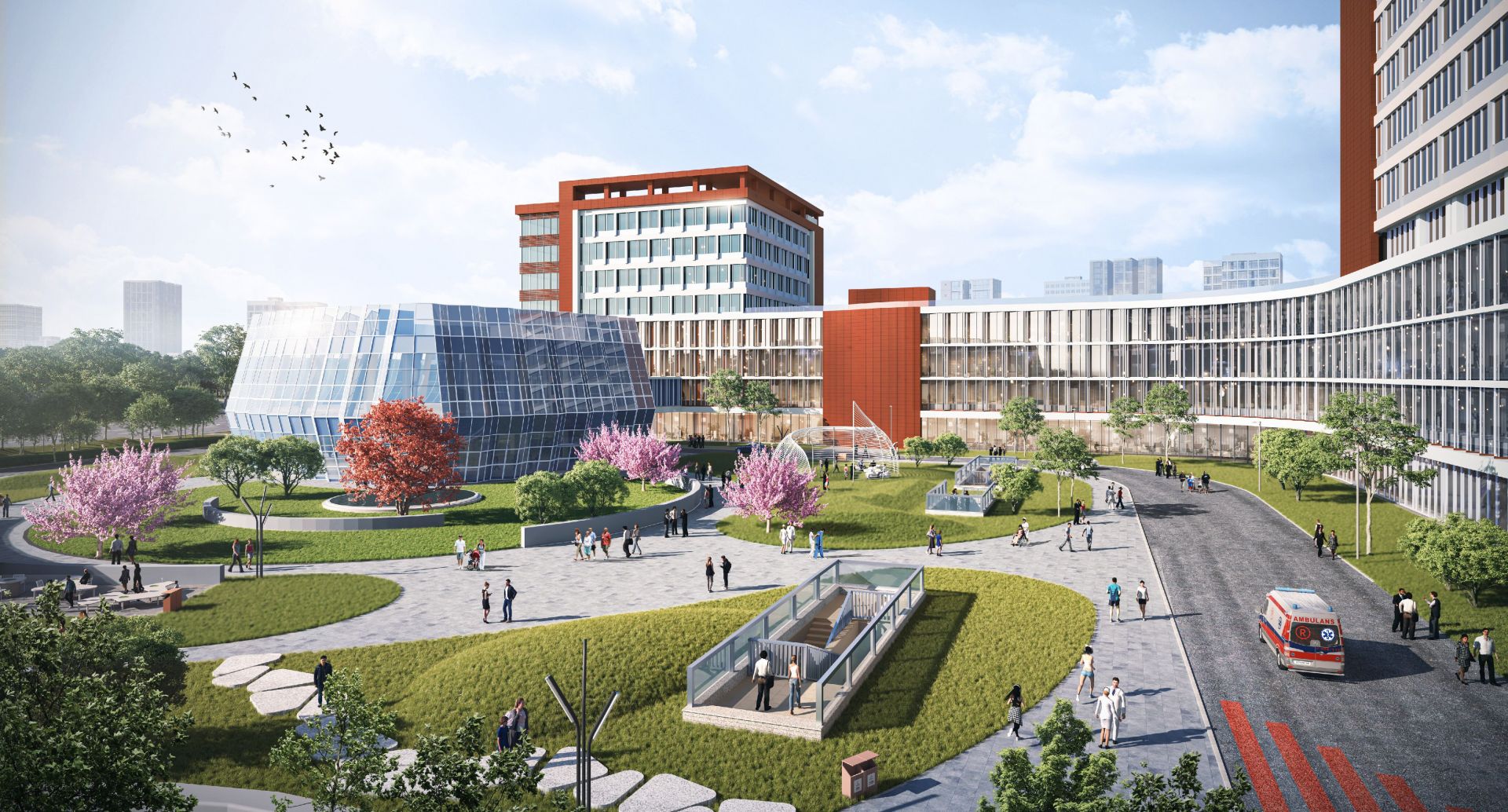 另外,还将围绕“大专科,小综合”的发展方向,充分发挥肿瘤专科特色优势,致力打造成为技术先进、设施齐全、环境优美、患者首选的现代化、国际化一流医院及研究型医疗中心,并集中布置放疗科、化疗科、核医学科、核素病房,还在附近预留质子重离子中心发展空间,创建...