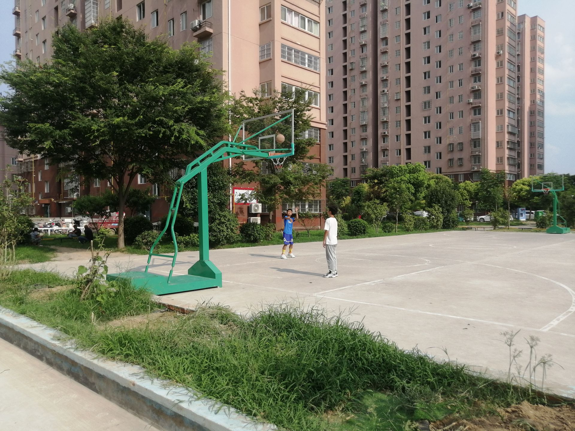 采访当天,记者来到位于果园社区南部的新建广场,只见广场宽阔大气、地面干净整洁,几名老人正坐在附近的凉亭避暑,两三个放假学生在健身器材上和篮球场玩耍。