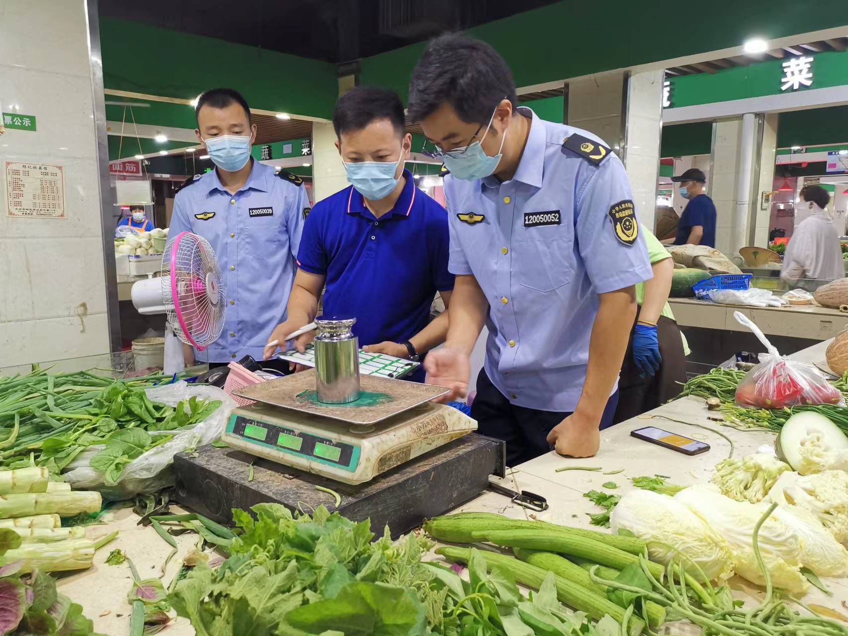 在检查的同时,执法人员向市场开办者和经营户宣讲计量法律法规知识,引导和督促经营者公正公平计量、诚信守法经营,此外,市计量院技术人员对市场内所有摊位商户强检计量器具进行免费检定。