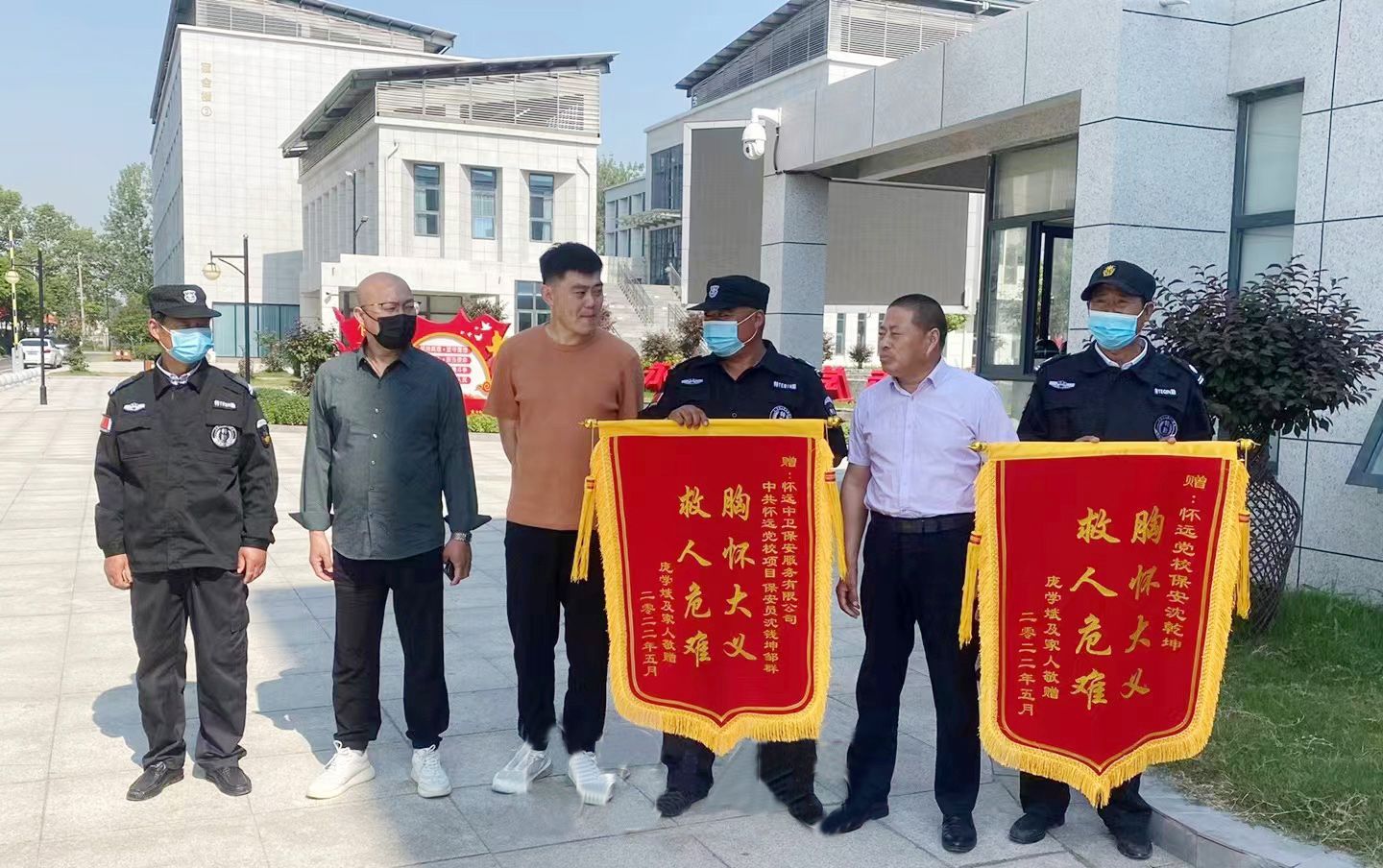 危急时刻,党校保安沈乾坤和邹群及时发现,第一时间奔跑到事发地点,将老人扶起并联系家人,拨打120急救电话,为挽救老人生命争取了时间。