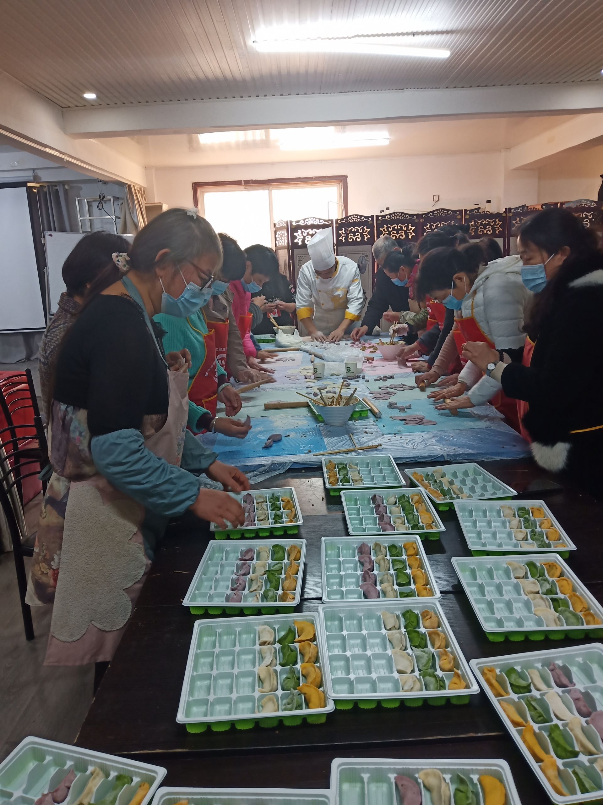 大家包制了五颜六色的养生爱心饺子,走进社区等处,为志愿者送去冬至的慰问。