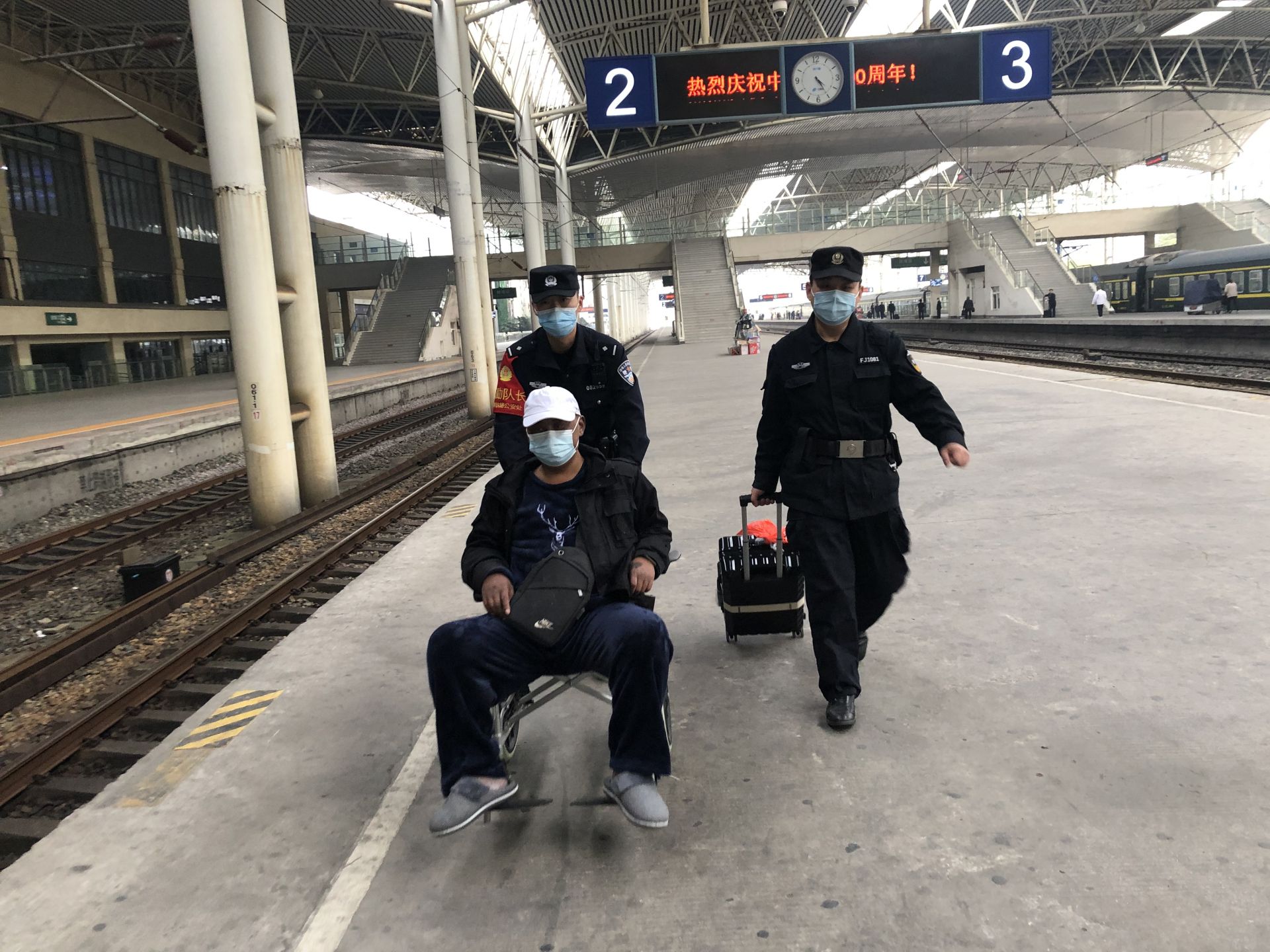 暖心!民警推起轮椅送旅客